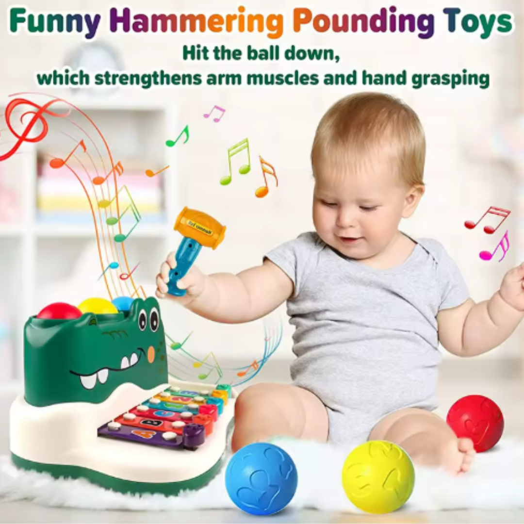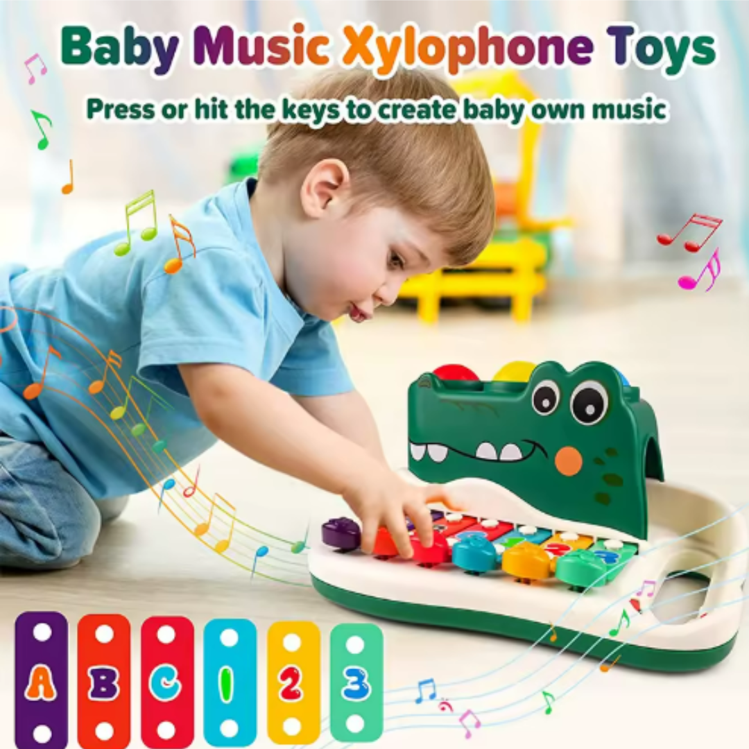 Este xilófono didáctico en forma de cocodrilo, con colores vivos y divertidos, es perfecto para que los niños desarrollen su oído musical mientras se entretienen.